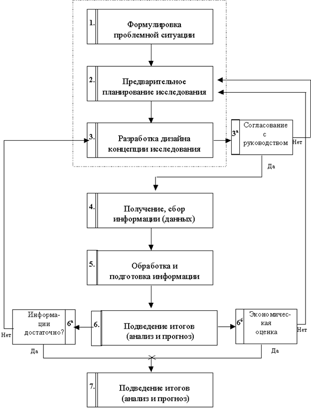Таким образом маркетинговое исследование представляет собой более широкое понятие, которое включает в себя исследование рынка сбыта, исследование внутренней среды фирмы, исследование маркетингового инструментария, его разработанности и эффективности использования, исследование рынка производительных сил (рабочая сила, сырье и материалы, денежный рынок и рынок капитала), исследование внешней среды, организацию исследований на основе бенчмаркинга и проведения маркетинговой разведки. Такое понятие сосредотачивает внимание маркетолога и предпринимателя на важнейших элементах сферы маркетингового исследования и заведомо облегчает формирование задач маркетинговых исследований, поиск "узких мест", "горящих точек", которые могут сопровождать процесс функционирования предприятия в условиях рынка, а также оказывать помощь в осуществлении контроля за организацией сбора и подготовки маркетинговой информации.