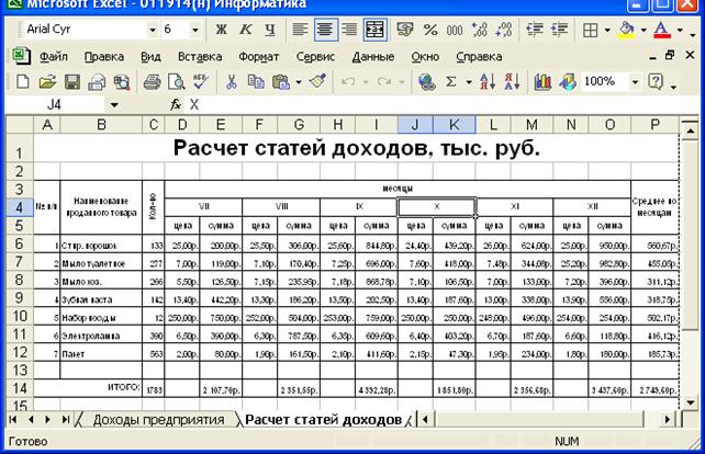 3.4.6. Вид готовой таблицы «Расчет статей доходов»