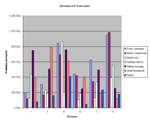 3.5. Построение диаграммы доходов за 2 полугодие по месяцам