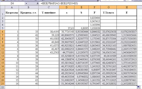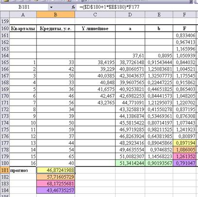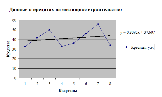 Приведены поквартальные данные о кредитах от коммерческого банка на жилищное строительство (в условных единицах) за 4 года (всего 16 кварталов, первая строка соответствует первому кварталу первого года).