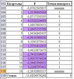 Таким образом, мы получили 9 поворотных точек, то есть p=9. Рассчитаем q: