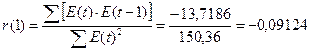 Далее рассчитаем значение первого коэффициента автокорреляции по следующей формуле: