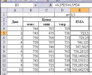 Далее по соответствующим формулам вычисляем момент и скорость изменения цен: