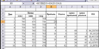 Чтобы рассчитать индекс относительной силы, необходимо для начала найти прибыли, убытки, а затем их суммы: