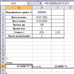 7. Определить, какой должна быть номинальная ставка при начислении процентов 2 раза в году, чтобы обеспечить эффективную ставку 25% годовых.