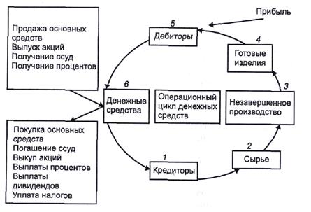 В обобщенном виде движение денежных средств и операционный цикл предприятия показаны на рис. 1.3 .