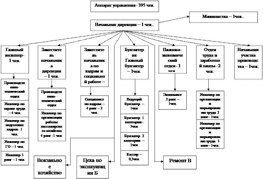 Основная цель деятельности организации – обеспечение стабильности и нормальной работы пассажирских и грузовых перевозок в близлежащих территориях. Организационная схема предприятия представлена на рис. 1.