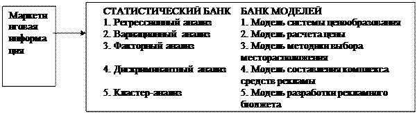 Банк моделей – набор математических моделей, способствующих принятию более оптимальных маркетинговых решений по деятельности рынка.