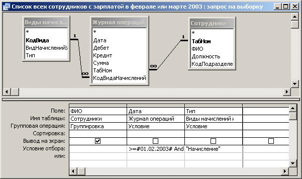 Запрос «Список всех сотрудников с зарплатой в феврале или марте 2003» 21