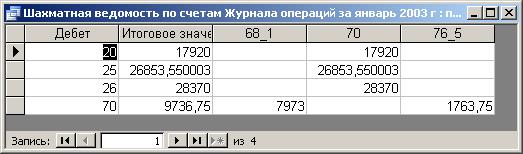 Запрос «Шахматная ведомость по счетам Журнала операций за январь 2003 г» 24