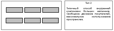 Рисунок 1. Типы расположения торгового оборудования внутри торгового зала