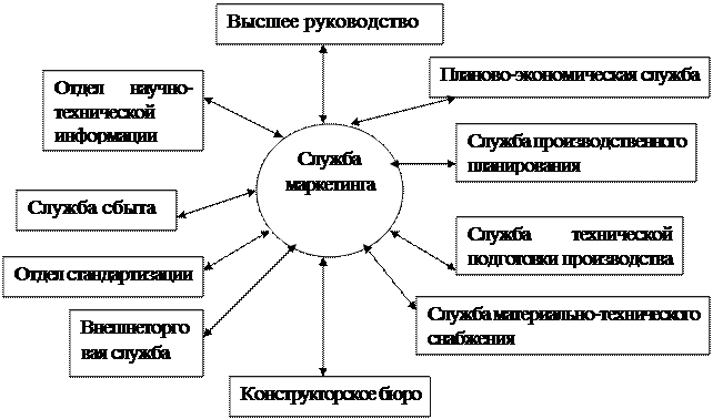 Структурные взаимосвязи отдела маркетинга с подразделениями предприятия можно изобразить следующей схемой.