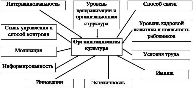 Организационная культура – специфическая, характерная для данной организации система связей, взаимодействий и отношений, осуществляющихся в рамках конкретной предпринимательской деятельности, способа постановки и ведения дела