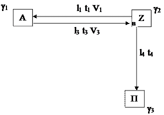 Разработать три схемы возможного размещения производства. Для этого на картосхеме, принятой за основу, зафиксировать: возможный источник сырья (А), поставщик электроэнергии (Z) и потребитель готовой продукции (П). Для всех обозначенных пунктов определить поправочные коэффициенты к капитальным вложениям соответственно γ1, γ2, γ3, учитывающие влияние среды на рассматриваемое производство. Воспроизвести транспортные связи между обозначенными точками: их вид, протяженность и тариф. Каждый вариант оценить по значению совокупного критерия СК: