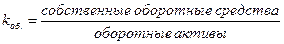 Он определяется как отношение разности между объемами источников собственных средств (реальный собственный капитал) и фактической стоимостью основных средств и прочих внеоборотных активов (итог I раздела актива баланса) к фактической стоимости находящихся в наличии у предприятия оборотных средств в виде производственных запасов, незавершенного производства, готовой продукции, денежных средств, дебиторских задолженностей и прочих оборотных активов (итог II раздела актива баланса).