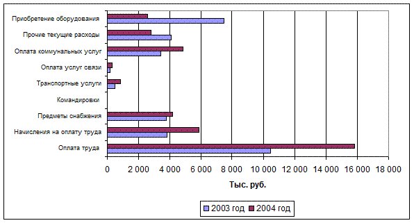 Анализируя сметы расходов за период 2002-2004 гг. можно отметить положительную динамику роста бюджетных средств на финансирование ГОУ «Краевой Дом молодежи»: