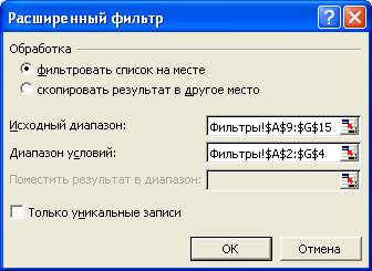 Перед тем, как использовать Расширенный фильтр нужно в некотором диапазоне задать все необходимые условия.