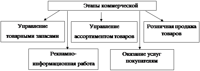 На предприятиях розничной торговли в качестве следующих этапов коммерческой деятельности выделяются следующие этапы (рисунок 1.2.).