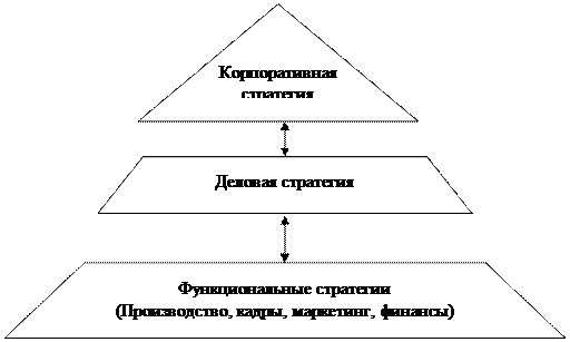 При разработке стратегического плана перед предприятием возникает выбор варианта своих действий, т.е. выбор стратегии, которая включает в себя корпоративную, деловую и функциональную стратегии (рис.13).
