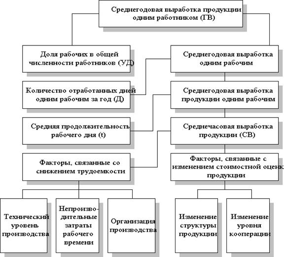 где УД1, УД0 – удельный вес основных рабочих в общей их численности по плану (базисному периоду) и отчёту; СВ0 – среднегодовая выработка одного рабочего по плану [8, стр. 134].