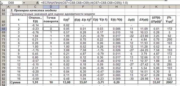 б) проверка независимостей уровня ряда остатков (отсутствия автокорреляции)