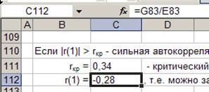 т.к. |r(1)| ≤ rкр – сильная автокорреляция