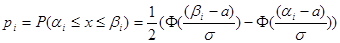 ( ) получаются в результате опытов, а  соответствующие теоретические вероятности  вычисляются в предположении о нормальном законе распределения по формулам: