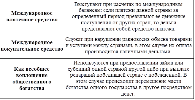 При золотом стандарте мировыми деньгами выступало золото как средство регулирования платежного баланса и кредитные деньги (банкноты) отдельных государств, разменные на золото (в основном доллар США и английский фунт стерлингов).