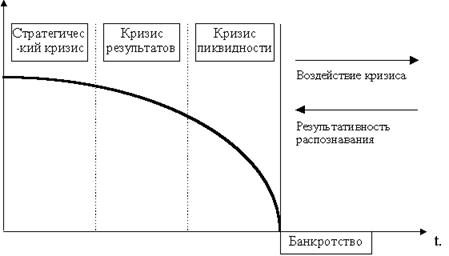 Особенно стоит отметить по данной схеме, что результативность распознавания кризиса обратно процессу развития кризиса, т.е. часто предприятия понимает, что находится в состоянии кризисе и в каком именно только на стадии “кризиса результатов” или “кризиса ликвидности”.[1]