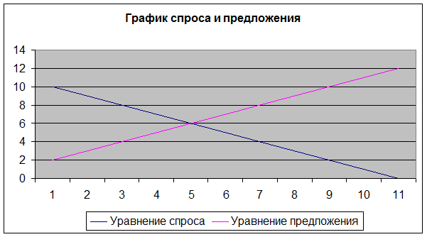 Нарисуйте график спроса и предложения, руководствуясь приведенными уравнениями, и определите на графике равновесную цену; правильность ответа проверьте на основе решения уравнений.