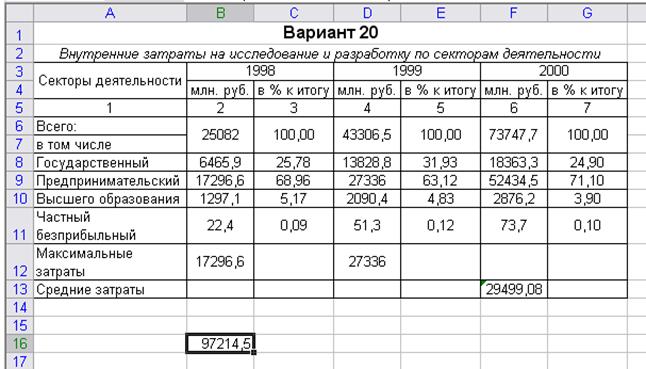 В итоге получается, что общая сумма затрат на исследование в предпринимательском и частом секторах равно 97214,5 млн. руб.