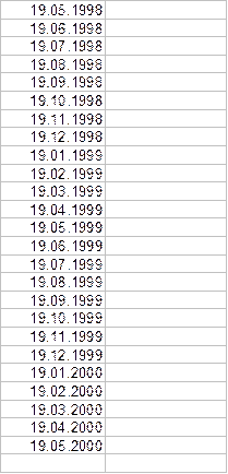 Составить ряд дат: начальная дата = 19.05.1998; конечная дата = 19.05.2000; шаг изменения = месяц.