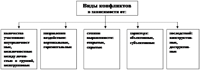 Количество конфликтов достаточно велико, для возможности выбора адекватного метода воздействия и управления соответствующим конфликтом проведём их классификацию в зависимости от ряда факторов: