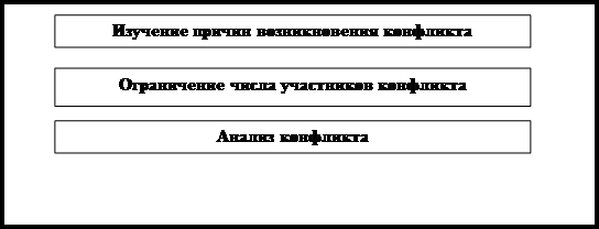После определения причин возникновения конфликта менеджер должен минимизировать количество его участников. Установлено, что чем меньше лиц участвует в конфликте, тем меньше усилий потребуется для его разрешения.