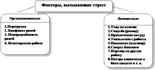 Как видно, стресс может быть вызван факторами, связанными с работой и деятельностью организации или событиями личной жизни индивида.