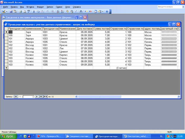 Учет поставок материалов и полуфабрикатов для контроля ритмичности поставок, выявления отклонений от плана по поставщикам и видам материалов. На основании ведомости, получаемой в результате решения данной задачи, а также и других задач, принимаются управленческие решения, касающиеся изменения планов и сроков поставок, выбора поставщиков на следующий плановый период.