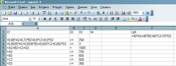 Х1 + Х2 + Х3 + Х4 = 1000 – ограничение в тоннах