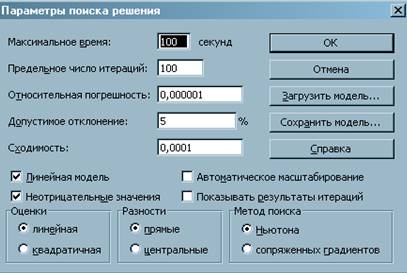 1.6 Дальше заходим в «Параметры» и ставим флажки напротив пунктов «Неотрицательные значения» и «Линейная модель» (рис. 4).