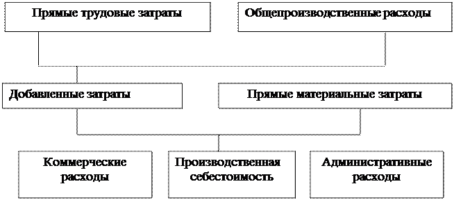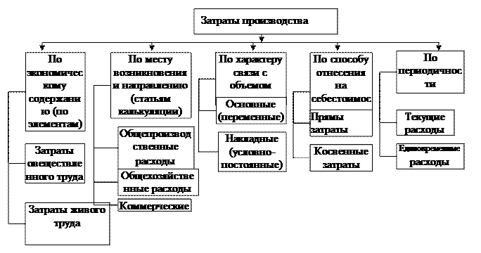 Правильное исчисление себестоимости продукции имеет важное значение: чем совершеннее методы калькулирования, тем легче выявить посредством анализа резервы снижения себестоимости продукции. Обобщенная схема затрат на производство показана на рисунке 3.