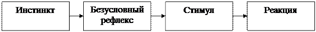 Одновременно с условным рефлексом, во взаимодействии «человек - среда», проявляется стимул, представляющий собой элемент внешнего мира, выступающий как причина последующих действий человека или изменений в самом человеке. Следствием стимула является реакция. Таким образом, биологическая мотивация человека, работника организации в том числе, состоит из четырех элементов (рис. 1.1).