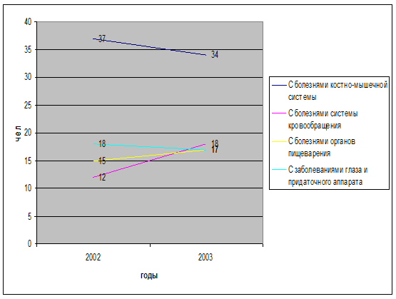 Немного о статистике других заболеваний. В структуре заболеваний ведущие места принадлежат болезням органов дыхания; органов пищеварения; костно-мышечной и соединительной ткани; глаза и его придаточного аппарата.