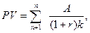 Формула приведенной стоимости срочного аннуитета постнумерандо: