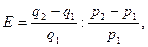 где E — эластичность спроса; p1 — прежняя цена; р2 — новая цена; q1 — величина спроса при прежней цене; q2 — величина спроса при новой цене.