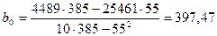 Рассмотрим уравнение : y =397,47 + 9,35x. Пусть