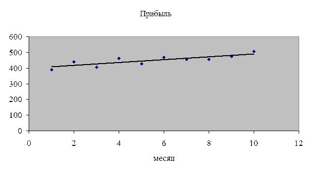 12. С помощью линейной парной регрессии сделаем прогноз величины прибыли на ноябрь и декабрь месяц: