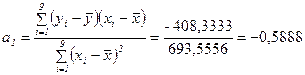 Y(10)= 86,4539-0,5888 ∙ X(10)= 86,4539-0,5888 ∙45,375=59,74