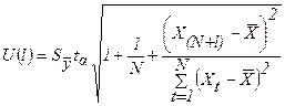 - нижняя граница прогноза: Y(N+l) – U(l).
