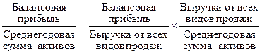 Иными словами, рентабельность совокупных активов (ВЕР) равна произведению рентабельности оборота (Rоб) и коэффициента оборачиваемости капитала (Коб): ВЕР = Коб * Rоб.