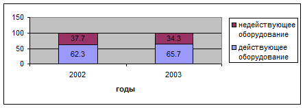 Как видно из рисунка 9, в организации наблюдается преобладание доли активных производственных фондов. Причем к 2003 году доля активных фондов выросла с 54,6 % до 55,4 %.