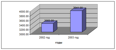 Рис.13. Динамика кредиторской задолженности ООО «Партнеры Сибири» в 2002-2003 годах, тыс. руб. Как видно из рисунка 13 , в 2003 году произошел рост суммы кредиторской задолженности организации с 3383 тыс. руб. до 3941 тыс. руб. рублей. В таблице 15 отражена информация об эффективности использования оборотных средств на предприятии. Таблица 15 Эффективность использования оборотных средств ООО «Партнеры Сибири» в 2002- 2003 году
